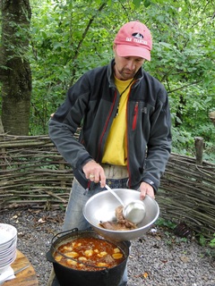 Bier, Eintopf mit viel Fleisch . Dazu gab's den besten Krautsalat des Landes. In einer Kristallkaraffe glänzte rot der Selbstgebrannte. Budjimo, Budjimo, hej, Budjimo, hej, Budjimo, Budjimo, hej, hej, hej.