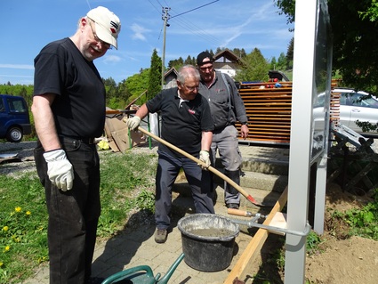 Installation des Schaukasten im Garten unseres Wanderheimes