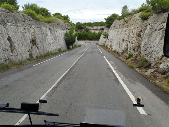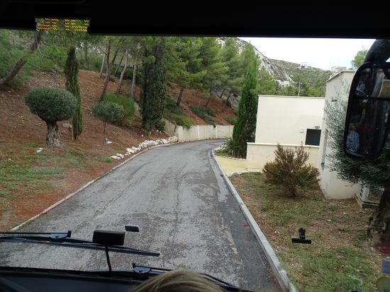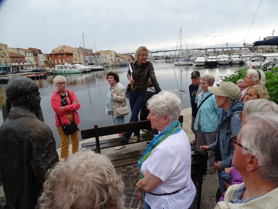 Dieser typische Brotaufstrich aus Oliven und Sardellenfilets („Filet d’Anchois“) ist sehr beliebt als Begleitung von einem Pastis. Schmeckte nicht schlecht doch leider waren die kleinen Brotabschnitte viel zu hart – ich hatte Angst um meine Zähne. Um 14.00 Uhr dann führt uns unser erster Ausflug Richtung Westen an der Küste entlang. Bäume, Mittelmeerlandschaft. Doch auch die großen Flächen früherer Waldbrände. Recht ursprünglich sind die kleinen Dörfer unterwegs. Immer runde Dachziegel. Keine Bausünden, wie große Ferienklötze sind zu sehen. Die recht quirlige Reiseleiterin Kathrin wird uns in französisch- deutsch die nächsten Tage begleiten. Martigue die Hauptstadt der Cote Bleu. Die Gemeinde liegt etwa 30 km westlich von Marseille, auf einem schmalen Landstreifen zwischen dem Golfe du Fos und dem Étang de Berre. Der Canal de Caronte, die Verbindung des Étang de Berre mit dem Mittelmeer, zerschneidet die Gemeinde in zwei Teile. Martigues ist eine Stadt des Wassers und wird in Südfrankreich auch Venedig der Provence genannt. Gerti Plangger