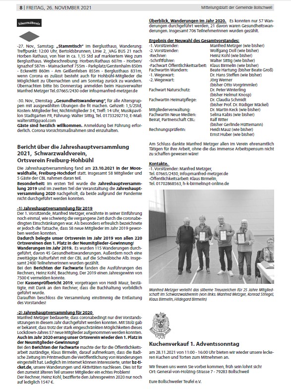F: Manfred Metzger; Anmeldung Tel. 07665/2430 wegen. Bahn/Bus Mund- und Nasenschutz nötig. |