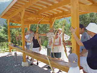 Klettern an der Kletterwand, Blumenbinden, Bogenschießen.