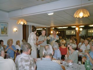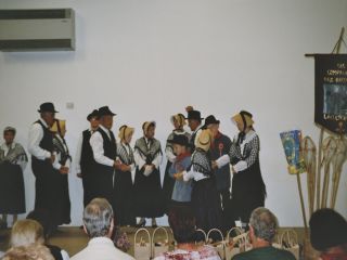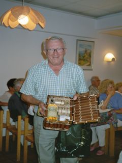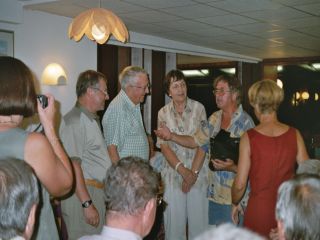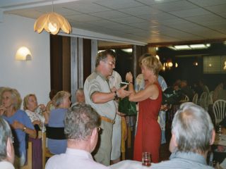 Nach dem Abendessen bedankten wir uns mit kleinen Geschenken an Janine Bilard für die reichhaltige Programm und die Organisation der Reise, bei Raymond Buffler für seine Bemühungen der nötigen Übersetzungen und Erläuterungen. | |