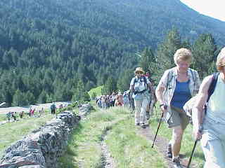 einen steilen Pfad hinab bis zur Asphaltstrasse, wo uns der Bus erwartet.