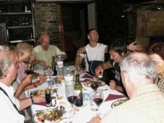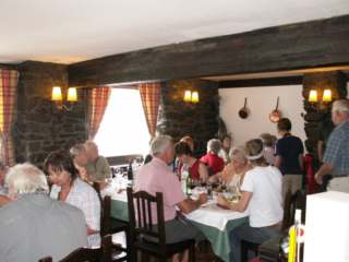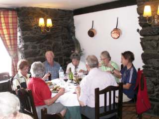 und Lamm. Dazu Rotwein. Dessert: noch warmer Apfelkuchen (dünner Teig,