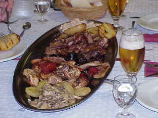 Hautspeise: 5 oder 6 verschiedene Fleischsorten (auch