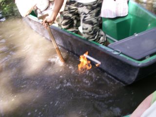 sie auf der Wasseroberfläche an, so daß es regelrechte Stichflammen