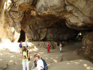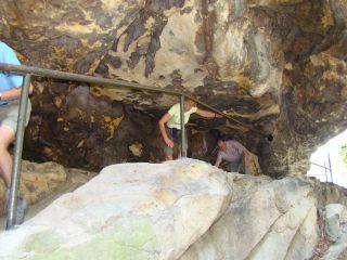 Höhle gelangt man an ein sich in der Felswand befindliches Loch,in