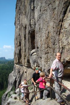 einen etwas ausgesetzten Pfad und eine mit Tritten und Stufen versehene