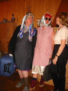 fünf unserer Damen; sie hatten sich etwas Lustiges ausgedacht, phantasievoll