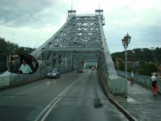 Blaue Wunder „ mit Blick auf die Personenaufzüge, die hoch führen