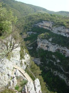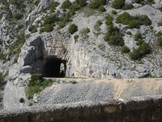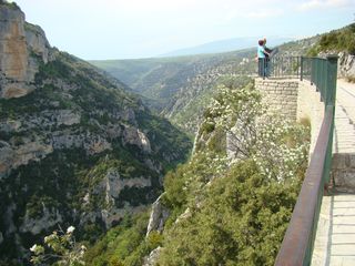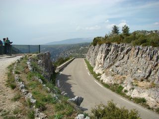 eine Schlucht am Abhang des rechts von uns sich erhebenden Mount Ventoux,