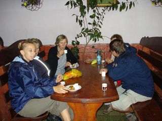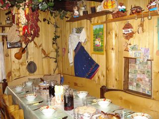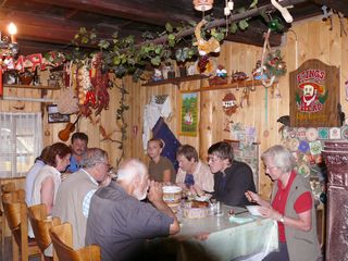 wir trinken. Essen tun wir in einem rustikalen Zimmer, welches an der Decke