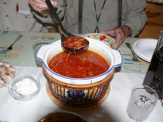 ist. Als erstes gibt es eine köstliche Rote Beete Suppe und dazu Speck
