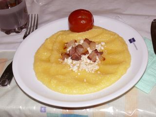 und Brot. Als Hauptgang gibt es ein Essen, welches Grießbrei ähnelt