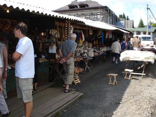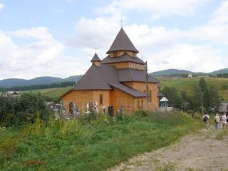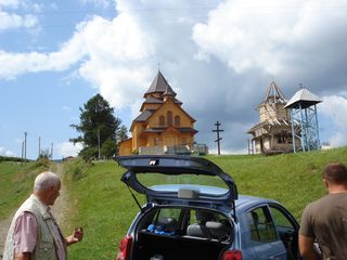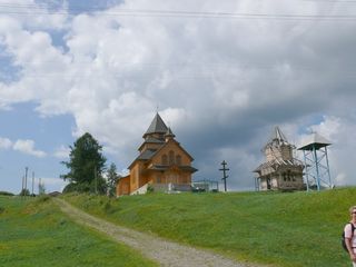 Baumstämme angebracht wurden. Nachdem wir die neue Kirche besichtigen,
