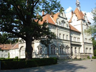 durch den Park des ehemaligen Jagdschlosses, mit den alten knorrigen Bäumen