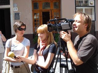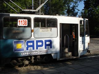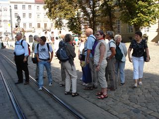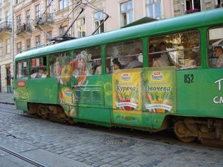 Die Fahrt zum Rathaus bewältigen wir mit der Liviv’er Straßenbahn