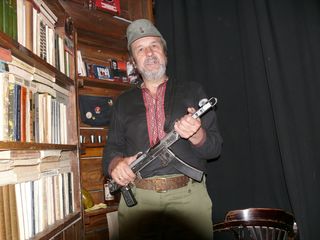 ein Soldat am Eingang verteilt Likör. Alles erinnert an die Widerstandskämpfer.