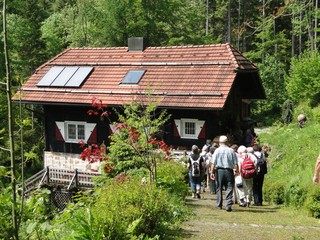 Einkehr im Gasthof Geisselstein. Weiter zum Ebenreuther See, zuvor besuchen wir den Kräutergarten der Waldfrau.