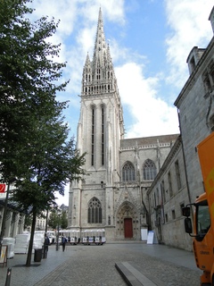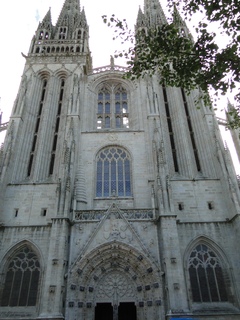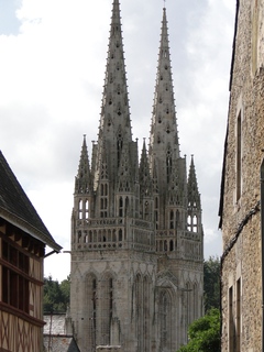 Türme der mächtigen gotischen Kathedrale St. Corentin. Corentin