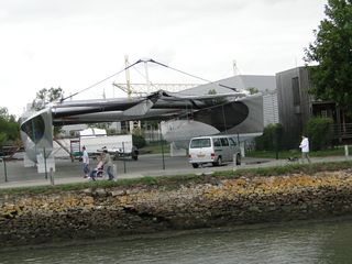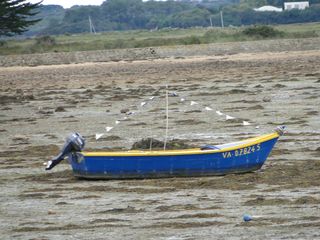 Beim Ablegen im Hafen von Vannes, hat die Ebbe so viel Wasser mitgenommen,