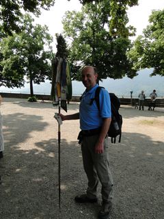 Vizepräsidenten Hans Martin Stübler den Wandertagswimpel, dieser