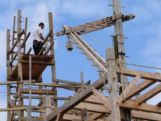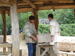 Sie bauen eine Burg mit den Techniken des dreizehnten Jahrhundert "Guédelon"