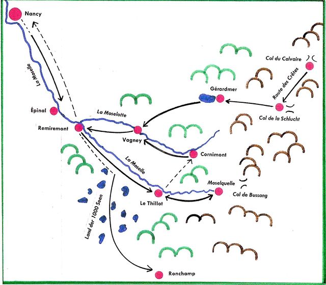 Nachdem wir von der Route des Cretes, der Vogesen-Kammstrasse starten, sind wir nach kurzer Zeit in 'La Lorraine', wie unsere Nachbarn Lothringen nennen. Wir nutzen das Netz von Radwegen schon am ersten Radeltag, an dem wir - von den Höhen der Vogesen kommend - auf die junge Mosel (La Moselle) treffen.