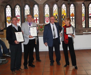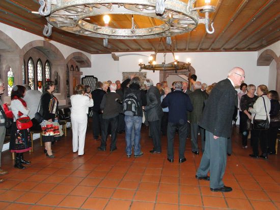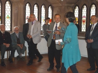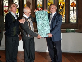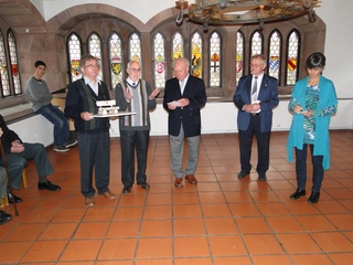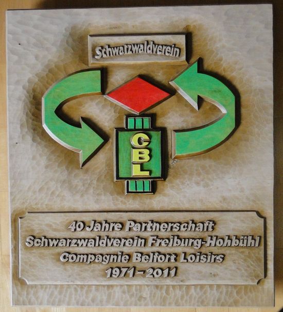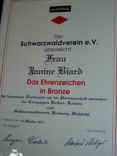 Die höchste Auszeichnung, die eine Ortsgruppe des Schwarzwaldvereins vergeben kann, die Verdienstmedaille in Bronze, wurde von Manfred Metzger an die „Cebelisten“ Janine Biard, Michel Limoge und Francis Fluchaire verliehen. Außerdem tauschten die beiden Vorstände attraktive Gastgeschenke aus, die die jeweiligen Wanderheime in Zukunft schmücken werden. Unser aufrichtiger Dank gilt an dieser Stelle unserem 1.Vorsitzenden, Manfred Metzger und natürlich auch seiner Frau Astrid, die sich beide seit Jahrzehnten nicht nur um unsere Ortsgruppe und unser „Berglusthaus“, sondern in vielfältiger Weise auch um die Deutsch-Französische-Partnerschaft gekümmert haben. Des Feierns nicht müde, zog die ganze Gesellschaft nach dem Ende des offiziellen Festaktes ins Stadthotel Freiburg (Kolpinghaus), um dort bei einem vorzüglichen Mittagessen den Tag ausklingen zu lassen. Nur zwei Tage später, am Sonntag, war unsere Ortsgruppe Gast der CBL in Belfort, wo auf französischem Boden mit Essen, Musik, Tanz, und Showeinlagen „40 Ans de Jumelage avec le Hohbühl“ und auch der 65. Geburtstag der CBL gebührend gefeiert wurde. Abschließend darf man sagen, die Freundschaft wird