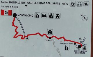 Brunello-Weins beginnt die Wanderung zur romanischen Abtei Sant‘ Antimo. Der