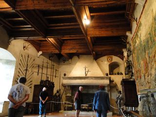 mit Waffen, Ritterrüstungen und antiken Möbeln.