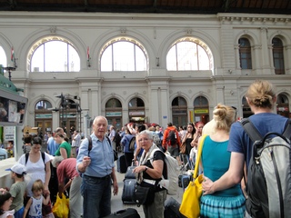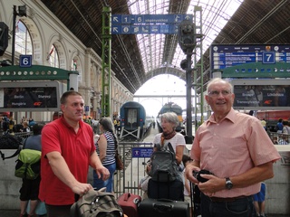 Morgens kamen wir in Budapest auf dem Bahnhof mit der wunderschönen filigranen Stahlkonstruktion an. Leichte Verwirrung, Otto hatte einen schnelleren Zug herausgefunden. Die Dame am Schalter hatte Ottos „Chop“ missverstanden und uns andere Reservierungen und Zeiten gegeben. Ein Bähnler im Bauarbeiteroutfit korrigierte unsere Geschichte und - flupp in den Zug, der in wenigen Minuten losfuhr. Zu siebt im Bequemen Fahrradabteil. Endlich konnte ich mir ein Hörbuch auf die Ohren setzen und die