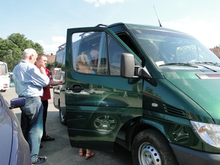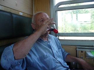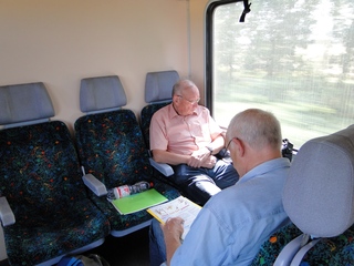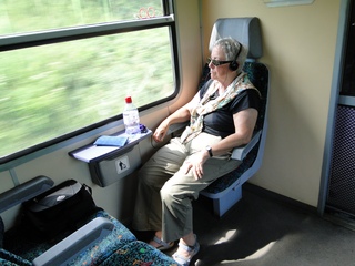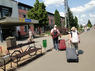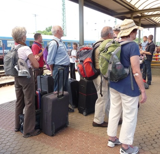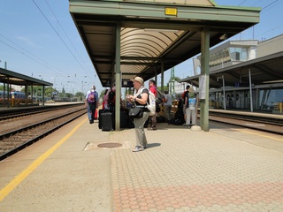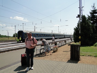 Die Weinberge von Tokay erinnern an unseren Kaiserstuhl. In Nyiregyhaza ist Umsteigen angesagt. Doch wo steht der Zug nach Zahony? Koffer rauf, Koffer runter die steilen Treppen, der Bahnsteig hatte sich geändert. Unsere lieben Männer halfen tatkräftig mit. Dann ging's weiter im Personenzug, der an vielen Orten mit unaussprechlichen Namen hielt. Es ist ein Traum - so eine lange Reise mit dem Zug. Langsam, die Fenster