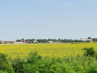 Sumpfgelände, dann wieder endlose Kornfelder und knallgelbe Sonnenblumen.