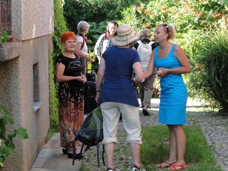 Wir sind also bestens aufgehoben. Und bevor wir dann nach dem obligatorischen dritten Wodka ins Wirtshaus zum Gruppentreffen ziehen wir noch das Bettsofa vorbereitet. Für uns in Deutschland undenkbar, kann man hier nachts die Haustüre unverschlossen lassen. Wenn wir spät nach Hause kommen können wir über die Hintertreppe ins unverschlossene Haus. Es hat etwas archaisches – dieser Weg ins Dorf. Halinas Haus liegt am Ortsrand und es geht erst mal über eine Staubstraße. Am Wegrand stehen einfache Häuser, gepflegt, alle mit kleinen Vorgärten. Wir sitzen im Biergarten bei leichtem Bier. Dann taucht Alissa auf. An der Hand ihre kleine Tochter und ich erstarre: da schauen mich zwei Ninaaugen (meine Enkelin) unverwandt an. Wenn man sagt, das jeder auf der Erde seinen Zwilling hat dann ist das hier. Auf dem Heimweg bellen die Hunde und das ist nun Ukraine 1971.