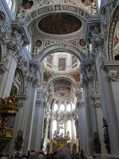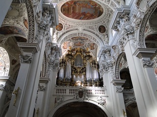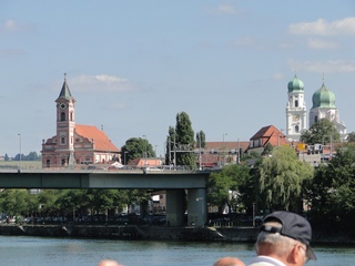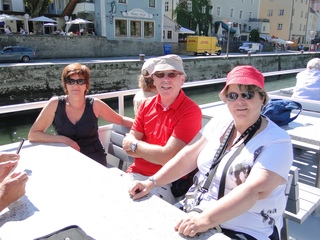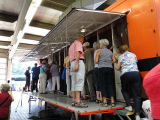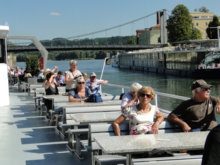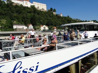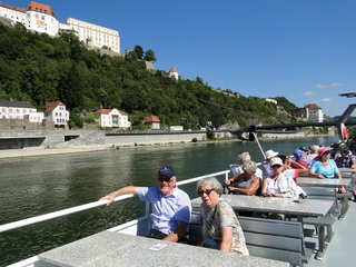 Unser Stadtführer war ein ehemaliger Architekt beim Stadtbauamt. Er arbeitete mit der Freiburger Münsterbauhütte zusammen. Als Erstes führte er uns zur Veste Oberhaus. Dort erklärt er uns ausführlich die Herkunft der Bayern, der Bayuwaren. Dann Passaus Namen – früher das römische Kastell Batavis. Bataver waren ein westgermanischer Volksstamm. Auch im früher niederländischen Indonesien gab es Batavia, heute Jakarta. Nie zuvor habe ich die Dreiflüsse Stadt Passau von oben betrachtet. Wie eine spitze Zunge liegt die Altstadt zwischen Donau und dem mächtigen Inn. Ich will hier keinen ausführlichen Stadtartikel schreiben, den kann man besser im Reiseführer lesen. Von der Schiffsanlegestelle streiften wir über die Höllgasse, dem Einkauf- und Ausgehviertel, zum Stephansdom, der größten barocken Kirche nördlich der Alpen mit seiner mächtigen Domorgel. Der große Domplatz ist derzeit Baustelle. Durch die Messer- und Schrottgasse mit Markierungsstellen der berüchtigten Hochwasser an den Häusern, mit Außentreppen und Durchlässen kamen wir auf den Rathausplatz mit seinem 68 m hohen Turm. Das Wandbild im Ratssaal zeigt eine Nibelungenhochzeit. Auch sonst ist das Rathaus prächtig ausgestattet. Von dort kommt man zum Scharfrichterhaus in welchem der Kaberettist Bruno Jonas sein Unwesen treibt. Nirgendwo sah ich jemals so viele Stadtführungsgruppen. Die großen Donaudampfer hatten ihre Passagiere ausgespuckt. Für das obligatorische Orgelkonzert ergattern wir einen guten Platz im Dom, der sozusagen ausverkauft ist – mehrmals täglich. So lebt Passau wohl ganz gut. Um zwei ging’s auf’s Schiff. Wie aus einem Versteck kommt die schwarze Ilz hinter der Veste Niederhaus in die Donau gekrochen. Beim Zusammenfluß von Ilz und Donau könnte man sich glatt die Reise nach Manaus sparen. Wie Amazonas und Rio Negro mischen sich auch hier beiden Flüsse auf einer kilometerlangen Strecke nicht. In Passau kommt dann noch der wieder etwas dunklere Inn als Hauptwasserbringer dazu. Die Zeit reicht uns noch für ein weiteres Highlight: Zum Höltlimperium gehört auch das Glasmuseum beim Rathaus. Hier begibt man sich auf eine Zeitreise. Eine geradezu traumhafte Sammlung aus den Jahren 1650 bis 1950 europäischer Glaskunst, vor allem aus Böhmen. Über sechs Etagen sind alle Stilepochen vertreten bis hin zur Moderne. Prunkgläser aus dem 18. Jahrhundert. Filigrane Jugendstilarbeiten, Art Deco. Eines schöner als das andere. Unmöglich alles in sich aufzunehmen, man fällt von einem Entzücken ins andere. Bei 30.000 Exponaten ist leider der Speicher im Hirn viel zu schnell voll. Erschöpft lassen wir uns auf der Rückfahrt zu einer ganz anderen Geschichte bringen, denn bei den Garagen von Rotel – Tours wird endlich das Geheimnis der Schlafkabinen gelüftet. Eng sind sie wie schon früher als ich selbst „Rotelinanerin“ war. Sogar die Küche am Ende des „Hängers“ ist unverändert. Und - ich hatte recht als ich mein Zimmer mit den Kabinen verglich – auch die Bettwäsche ist die aus den alten Tagen. Bericht: Gerti Plangger