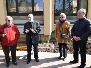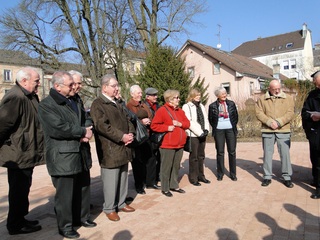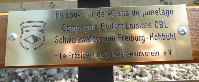 Die CBL ist in Belfort einer der größten Kultur -und Wandervereine und hat damit auch in der dortigen Stadtverwaltung einen entsprechenden Stellenwert. Es werden gemeinsame Wanderungen hier im Schwarzwald und dort in den Vogesen durchgeführt. Man besucht gemeinsam kulturelle Veranstaltung und Besichtigungsfahrten und verbringt auch gemeinsame Ferienwanderwochen hier in Deutschland oder in Frankreich. So waren auch am Rosenmontag 50 CBListen hier in Freiburg um mit den Freunden des Schwarzwaldvereins den Umzug zu besuchen. Viele Jubiläen dieser Freundschaft werden immer wieder in einem würdigen Rahmen in der dortigen Stadtverwaltung gefeiert. Nun hat der Schwarzwaldverein der CBL eine Ruhebank gestiftet. Diese Bank soll als äußeres Zeichen der Freundschaft auf einem entsprechenden Platz in der Stadt Belfort aufgestellt werden. Dabei zählt weniger der materielle Wert als die symbolische Bedeutung für die Freundschaft. Am 8.März trafen sich deshalb in Belfort seitens der Stadtverwaltung Belfort als Vertreterin des Oberbürgermeisters die Beigeordnete für Jugend und Sport Madame GUIJOT mit 2 Mitarbeitern, von der CBL alle Präsidenten der letzten 50 Jahre und einige Vorstandsmitglieder, vom Schwarzwaldverein Hauptverwaltung der Vizepräsident Hans Martin Stübler, von der Ortsgruppe Freiburg Hohbühl der erste Vorsitzende Manfred Metzger und einige Vorstandsmitglieder und natürlich noch die Begründer der ersten Stunde der Freundschaft Alfred Pross –Schwarzwaldverein- und Roger Zurbach –CBL. Die Bank wurde beim Bürgerhaus – Maison de Quartier Centre Ville- im Herzen der Stadt Belfort in einem kleinen Park aufgestellt und feierlich enthüllt. Zunächst begrüßte Madame GUIJOT die Teilnehmer im Namen