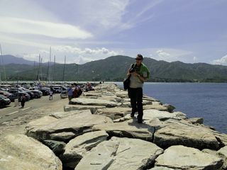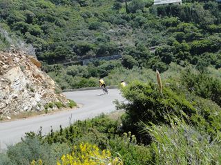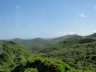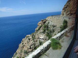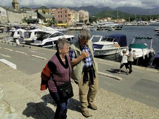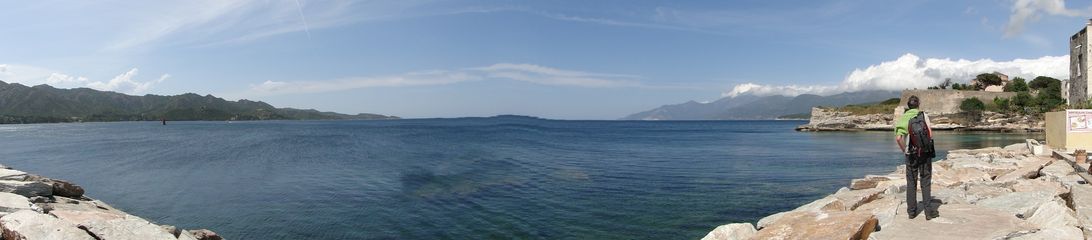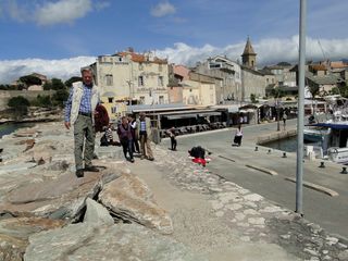 Schon kurz vor neuen verlassen wir die Stadt Richtung Norden zum Cap Corse. Geradezu spektakulär ist die Ostküste. Auf einer Superstraße fahren wir am felsig zerklüfteten Steilufer entlang. Wie mit dem Messer aus dem Fels geschnitten. Mal hoch am Hang, mal am Meer entlang. Immer wieder kommen wir durch kleine Dörfer. Runde Türme wachen auf dem Berg oder im Dorf. Sie wurden von den Genuesern gebaut und über 90 sollen auf dem Cap stehen. In mehr oder weniger gutem Zustand. Ganz einmalig ist aber der Blick aufs Meer. In den kleinen Buchten leuchtet es in allen Blauschattierungen. Kurz vor der Nordspitze steigt die Straße zum Col de Serra hoch. Steineichen und Korkeichen fühlen sich hier wohl. Endlich ein Fotostop. Am Capo Blanco. In er Ferne grüßen schneebedeckte Berge. Tief unter uns liegt ein Dorf in einer Bucht. Zwei dicke Türme stehen über uns und auf dem Bergkamm - ach es sind keine weißen Möwenflügel, nein, die Flügel gehören Windrädern, die wohl aufgereiht nebeneinander stehen. Wir sind an der Westküste angelangt und hier geht es richtig zur Sache. Schlaglöcher, enge Straße und keine geraden 100m. Um kurz vor elf passiert's dann: Gilbert gibt sein Bestes doch bei einer Dorfdurchfahrt hängt sich eine dicke Pappel über die Straße. Ganz langsam an ihr vorbei, doch vorne kommt ein Auto und schon machts „paff“ . Ich dachte erst das Dach wäre kaputt, doch dann aber hatten sich Scheibe über dem 2. Eingang und noch eine Weitere in Spinnennetze verwandelt. Man mußte sie herausbrechen. Adventurtour? Eher nicht. Da auf der engen Straße sowieso nicht schnell gefahren werden kann fand ich den Platz am fehlenden Fenster super. Man hört die Vögel zwitschern und der köstliche Duft der Blüten und Bäume streift vorbei. Nur unwesentlich verspätet kamen wir nach Saint-Florent in unser Restaurant. Schicke Yachten schmücken den Hafen. Der kleine Ort wird das korsische St.Tropez genannt und so sieht er auch aus. Weiter geht es durch das Déssert des Agriates. Als alter Wüstenfreak hatte ich mir von dem „Déssert“ trotz Assekremerfahrung eine ganz andere Vorstellung gemacht. Aber klar – Korsika ist ein wilder Felsklotz und so ist es auch hier. Felsig, nur dürftig bewachsen mit Macchia. Wie goldene Leuchter stehen die hohen Fenchelblüten dazwischen. Die vorgesehene Wanderung durch diesen kargen Landstrich fällt leider flach. Wir fahren und kommen schließlich zur Bucht von Lozari zu unserer Ferienanlage Belambra bei Belgodere. Gerti Plangger |