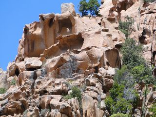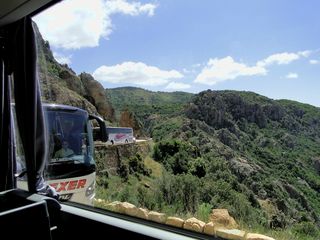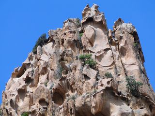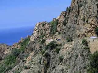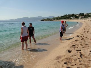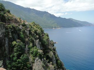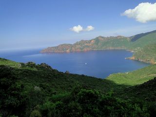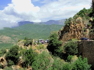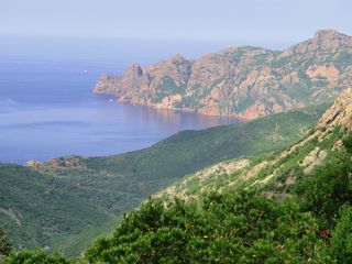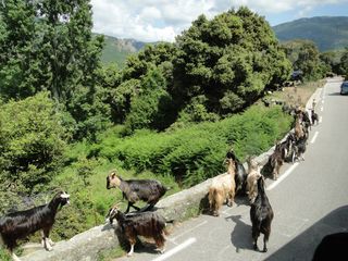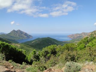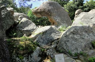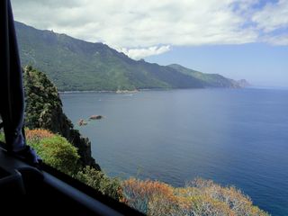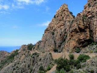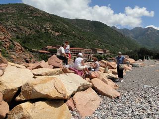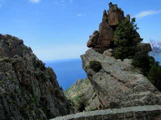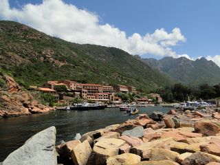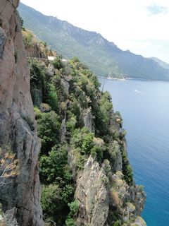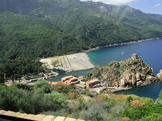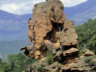Wir verlassen unser „Belambra“ und brechen nach Süden auf. Über Olmo windet sich die D 81 auf den Col de Palmarella. Auf diesem Topaussichtspunkt trifft sich alles was Beine oder Räder hat um die roten Felsen der Bucht von Girolata zu bestaunen. Das Dorf am Wasser ist nur auf Wanderwegen zu erreichen. Hätte man gedacht die Westküste des Cap Corse wäre nicht zu toppen – die Straße nach Porto ist aus Felsen gehauen und rechts gähnt der Abgrund. Allerdings ein malerischer, denn es ist der Golf von Porto. Der wie ein Finger ins Felsenland stößt. Für den Busfahrer die Meisterprüfung. Endlos zieht sich die Autoschlange hinter uns und wer entgegen kommt muss seine Rückwärtsfahrkunst beweisen. Nicht nur 1x, denn es kommen uns auch Busse entgegen. Große Aufregung, auch bei uns im Bus und bien sur geben alle noch Ratschläge. Die Motorradfahrer machen es sich derweil in einer kleinen Haltebucht gemütlich. Gegen Mittag kommen wir nach Porto, das sich in einem weiteren Golf versteckt. Alte Eukalyptusbäume säumen den Weg in die Stadt. Ein kleiner Hafen und ein genuesischer Turm, der hier aber viereckig ist und natürlich über dem Örtchen thront. Außer vielen Touristen mit dem üblichen Souvenirangebot ist hier wenig Besonderes zu finden. Die Calanches von Piana gelten als besonderer Leckerbissen Korsikas. Direkt an der engen, kurvenreichen Küstenstraße Richtung Porto stehen karminrote Felsen mit bizarren Verwitterungsformen. Hier sind der Fantasie keine Grenzen gesetzt. Wir wandern ein gutes Stück die Straße aufwärts und treffen auf Formationen wie Schildkröte, Adler oder einen Bischofskopf, dann noch ein Herz. Grandios! Und dort ist noch ein Hundskopf. Es ist schon toll was die Witterung aus Felsen zaubern kann. Piana lassen wir hinter uns. Die Straße wird zahmer. Wir rauschen verkehrsfrei durch Baumkugeln und Felsflecken ins Tal. Auf Grasflächen toben sich Pferde aus. Eine langhaarige Ziegenherde trottet unbekümmert die Straße entlang. Doch es wäre nicht das wilde Korsika wenn bereits in Cargese das halbe Dorf am Hang hinge. Und so sind wir bereits in der Region Ajaccio. Nun kommen Strände. Mutige sind schon am Baden. Dicht besiedelt ist diese Golfgegend. Ajaccio haben wir umfahren, kommen auf der breiten Straße nur am Flugplatz vorbei. Wir kurven und kurven von einer malerischen Bucht zur anderen und jedes mal denke ich – das wird unsere sein. Mais no. In Propriano am Golf von Valinco quält sich der Bus an großzügig parkenden Autos durch die ohnehin enge Straße. Und wieder kurven wir über die Höhen bis zur nächsten Bucht. Hier unten im Süden sehe ich auf den Straßenschildern zu den kleineren Ortschaften beim flüchtigen Vorbeifahren oft die Ortsnamen durchgestrichen. Straßensperrung? Nein, denn der korsiche Name ist gut lesbar. Separatisten? Man ist Korse, nicht Franzose. Endlich, endlich sind wir da. Portigliolo mit dem Feriendorf „U Livanti“ wird unsere 2. Bleibe. Gerti Plangger