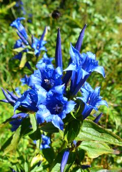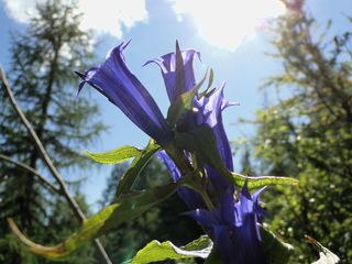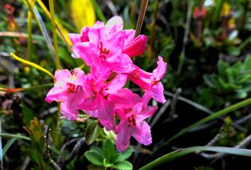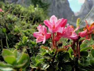 unter den Felsen entlang. Wir entdeckten kleine Enziane und Alpenrosen.