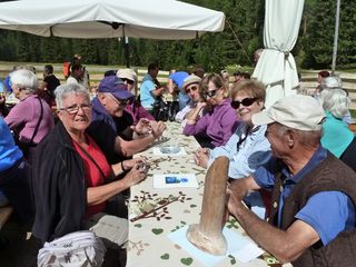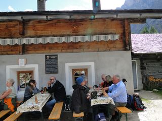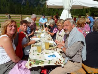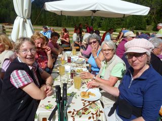 – unserem Wanderziel. Wir können draußen sitzen. Auch hier ist