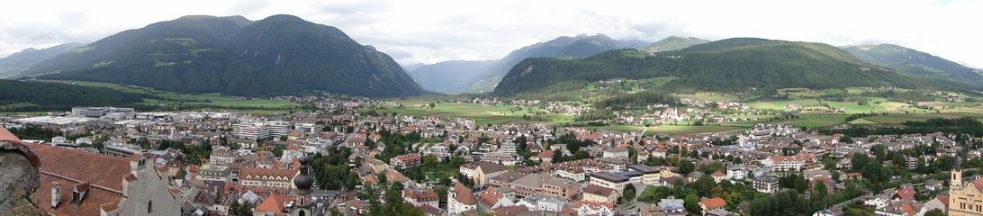 Bruneck. Der Ortskern ist klein im Verhältnis zum großen Speckgürtel