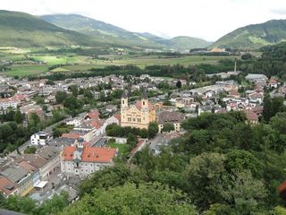 aus Industriegebiet und den Neubausiedlungen, die sich weit in die Berge