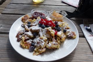 schlüpften wir schnell in die Hütte. Apfelstrudl, Speckknödl