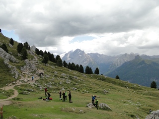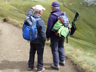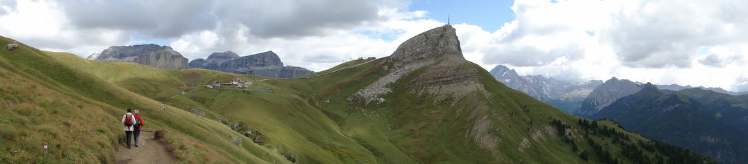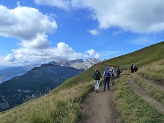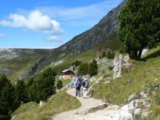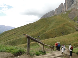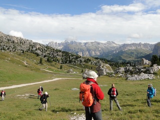 Wiese hoch. Über den Friedrich-Augusta-Weg am Langkofel entlang soll