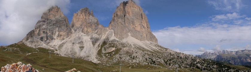 Es ist am Sellajoch schon imposant. Von allen Seiten ragen