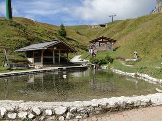 Oberhalb des Sellajochrestaurants hat das Rifugio Salei einen kleinen Teich