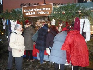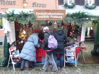 Weihnachtsmarkt in Staufen am Stand der Kinderkrebshilfe.