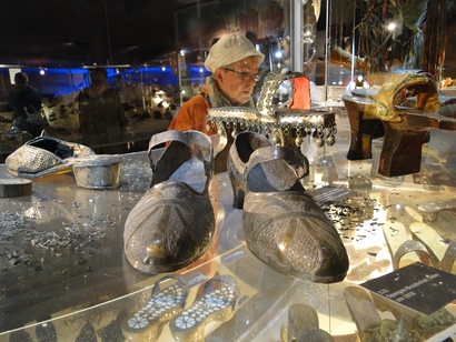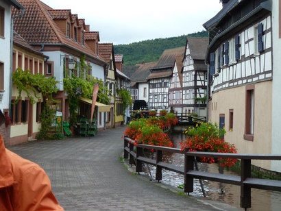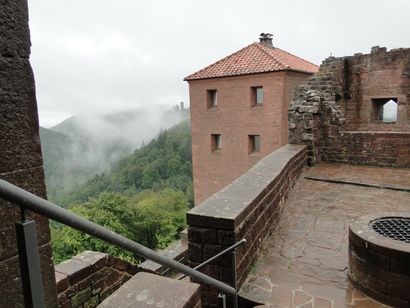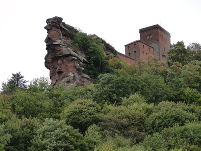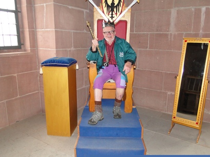 Die ganze Nacht rauscht der Regen runter. Mir vergeht die Wanderlust. Doch Manfred zückt den Plan B. Anstatt auf drei Burgen auf und ab zu steigen besuchen wir in Hauenstein das Schuhmuseum. Eine sehr interessante Führung zeigte uns die Entwicklung der Schuhmacherei von seinen mühseligen Anfängen bis zum Heute. Unglaublich klobige Maschinen, original von früher lassen diese mühselige Arbeit von einst erahnen. Ich habe mir darüber noch nie Gedanken gemacht. Der Lärm muss unerträglich gewesen sein. Im Obergeschoss ist noch eine Sammlung mit Schuhen aus aller Welt zu sehen. Und was entdecke ich! Tuaregsandalen. Zum Trifels wurden wir bis zum Gasthaus Barbarossa hochgefahren.