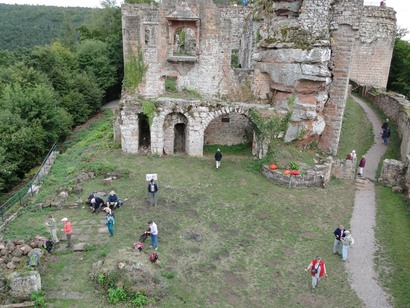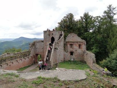 Die Wolken wollen nicht weichen. In Ramberg lassen wir uns von der Tante des Hauses durch die Bürstenfabrik führen. Eine kleine Ausstellung nur aber man führt uns die alten Maschinen der früheren Produktion vor. Auch hier war zuerst alles Handarbeit. Die Borsten kommen aus aller Welt. Vieles aus Indonesien. Zur Burg Neuscharfeneck haben wir heute die Kleinausgabe gewählt. Ich glaube ich habe einfach keine Lust mehr. Gemütlich steigen wir auf einem breiten Weg zum Waldhaus „Drei Buchen Hütte“. Hier hören wir endlich mal den einheimischen Dialekt. Das „Pälzisch“, das mir so gut gefällt. Beim „Bürstenbinder“ erzählen die anderen von der größeren Tour mit toller Aussicht von der Burg. Der Aufstieg (den ich nicht wollte) soll sehr moderat gewesen sein. Aber für mich ist es Mut zur Lücke. Wir genossen dafür zum ersten Mal die Sonne auf unserem Balkon. Gerti Plangger |